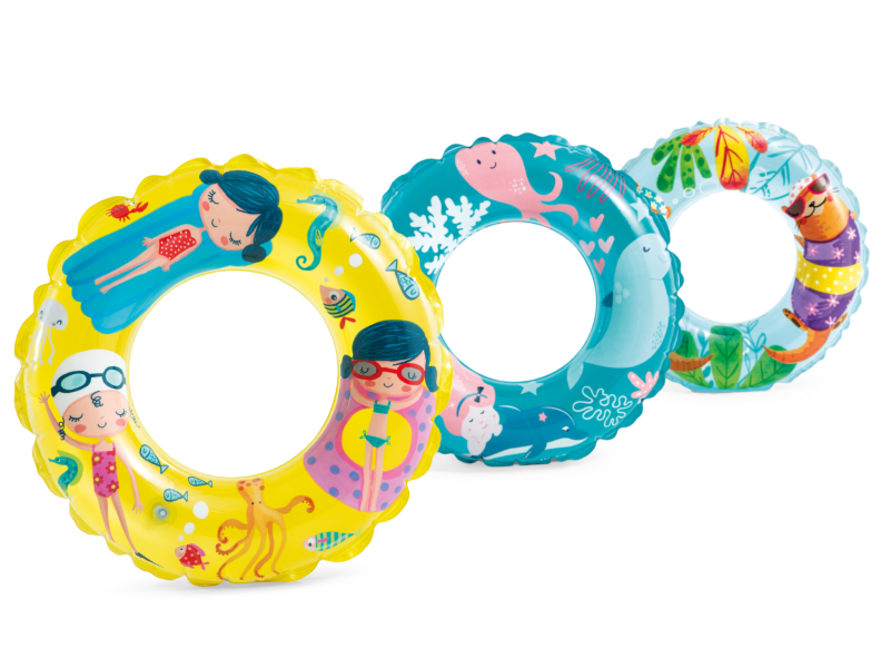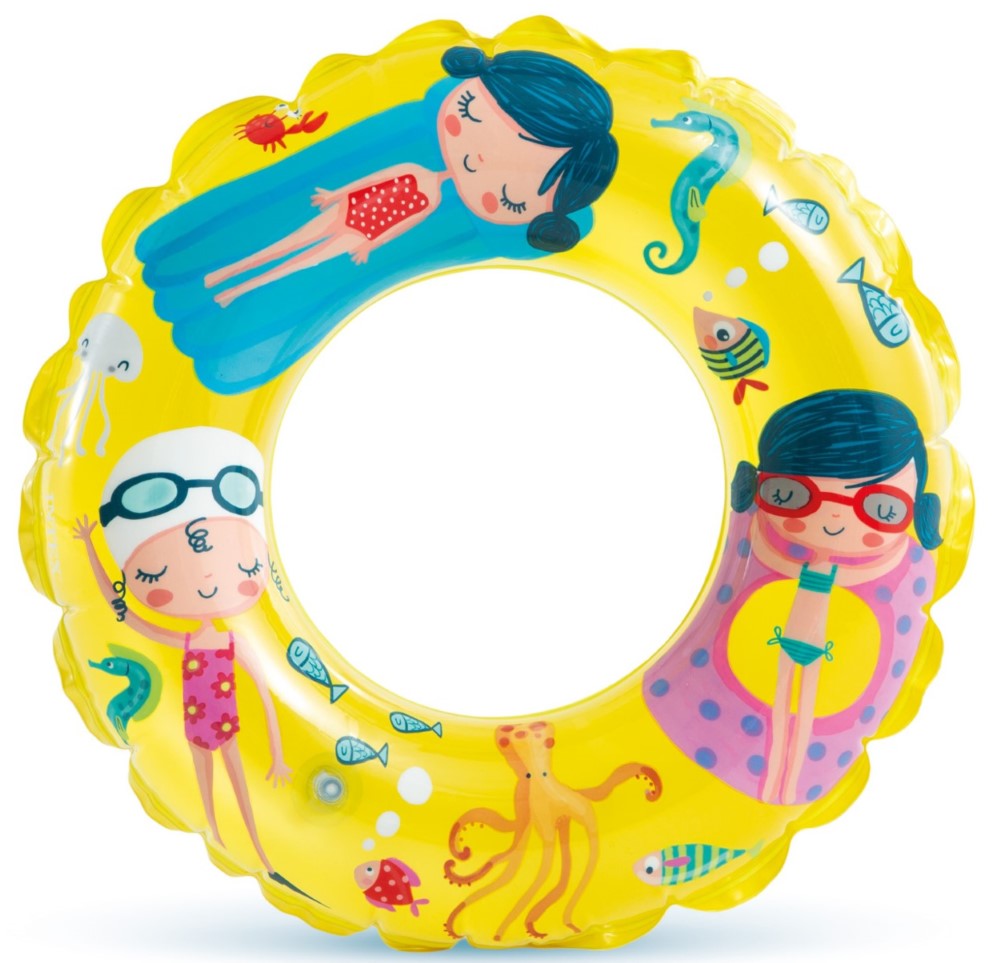 Prozirna guma na naduvavanje sa printom, namenjena za decu uzrasta od 6 do 10 godina.