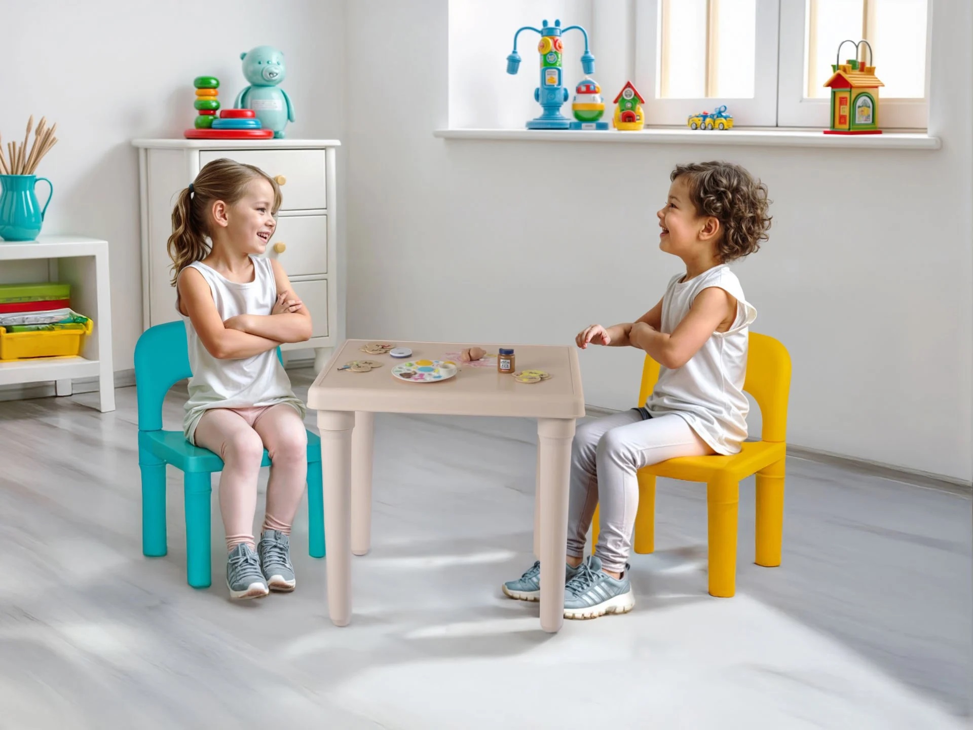 Dimenzije: 44x44x41 cm – stol, 44x30x27,5cm – stolica